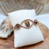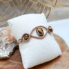 Partie centrale en oeil de tigre sertie de laiton argenté, perles d’oeil de tigre & perles en acier inoxydable
