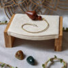 À l’extrémité de la chaine, tu trouveras des perles de cristal de roche.