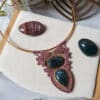 Le collier Assisi se pare de deux belles pierres d’agate mousse.