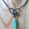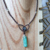 Le pendentif et la perle sont en amazonite, une pierre naturelle utilisée en lithothérapie.