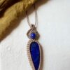 Les pierres de lapis lazuli comportent des taches blanches et dorées, qui correspondent à des traces de calcite et pyrite, respectivement.